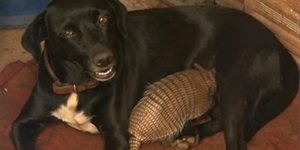 Cadela adota dois filhotes de tatus que ficaram orfãos no PR