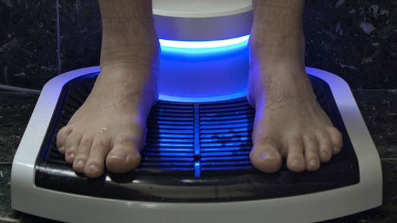 Se você ainda procura uma toalha de banho grande o suficiente para se secar totalmente após se lavar, a solução pode estar neste acessório único para banheiro. Fique cerca de 30 segundos nele e você se seca. Parece uma balança de peso, mas na verdade é um secador que lança ar quente para secar uma pessoa sem a necessidade de uma toalha.